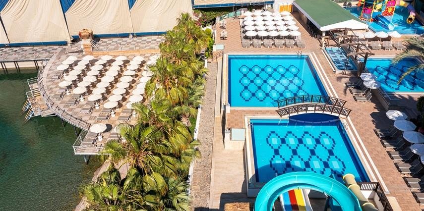 Premium Alkolsüz Her şey Dahil Konseptinde; Sabah kahvaltısı öğle ve akşam yemekleri açık büfe olup tesisin belirlemiş olduğu markalar dahilinde yerli alkolsüz içecekler 24 saat geçerlidir. Kahvaltıda çay kahve ve taze portakal suyu, meyve suları ücretsizidir. Öğlen ve Akşam yemeklerinde taze meyve suları ücretlidir. Türk kahvesi sadece belirlenen alanda ücretsiz sunulmaktadır. Tesiste alkollü içecek servisi bulunmamaktadır ve dışarıdan alkollü içecek tesise getirilmesi yasaktır.