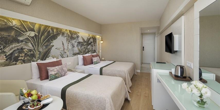 * Flora Dublex Oda: 14 adettir. 56 m² genişliğindedir. Alt katında 2 adet tek kişilik yatağın bulunduğu çocuk odası, üst katında 1 adet çift kişilik yatağın olduğu ebeveyn yatak odası mevcuttur. 2 yatak odası • 2 balkon • 2 adet TV • 2 adet WC ve banyo • Banyoda duşa kabin, WC, telefon, saç kurutma makinası • Tercihe göre ayarlanabilir klima • Minibar •Kettle (çay çeşitleri ve fincan takımı) • Dijital kasa • Telefon • Elektronik kapı kartı • Kablosuz internet erişimi, Wi-Fi ücretsiz olarak bulunmaktadır.