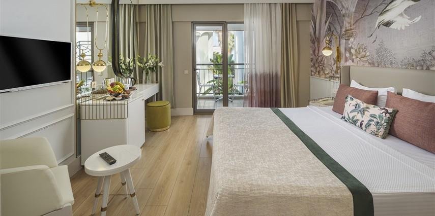* Premium Dublex Superior: 13 adettir. 81 m² genişliğindedir. • 2 Adet Yatak Odası, • Giyinme Odası • Banyo da duşa kabin, WC, telefon, saç kurutma makinası • Balkonda Jakuzi • TV • Tercihe göre ayarlanabilir klima • Mini Buzdolabı • Kişisel bakım ürünleri • Kettle (çay çeşitleri ve fincan takımı) • Dijital kasa • Telefon • Elektronik kapı kartı • Kablosuz internet erişimi, Wi-Fi ücretsiz olarak bulunmaktadır.