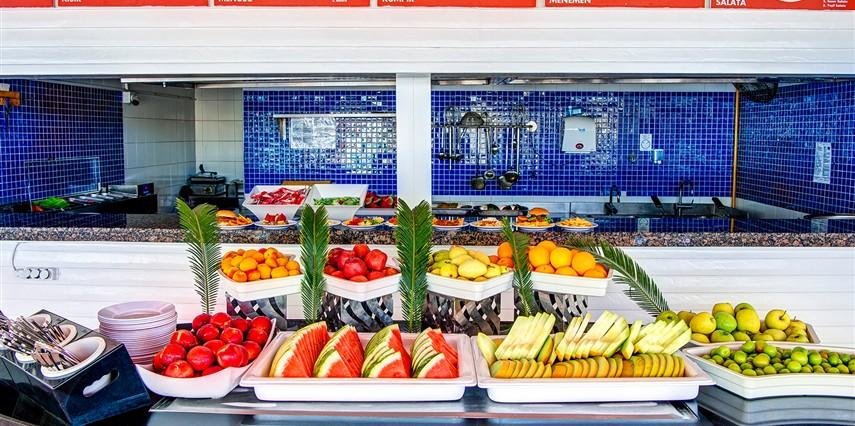 Sabah kahvaltısı, öğle ve akşam yemekleri açık büfe olup, tesisin belirlemiş olduğu saatler ve markalar dahilinde alkolsüz yerli içecekler ücretsizdir. Erken yapılan girişlerde alınan kahvaltı ve çıkış günü öğle yemeği ekstra ücretlidir.