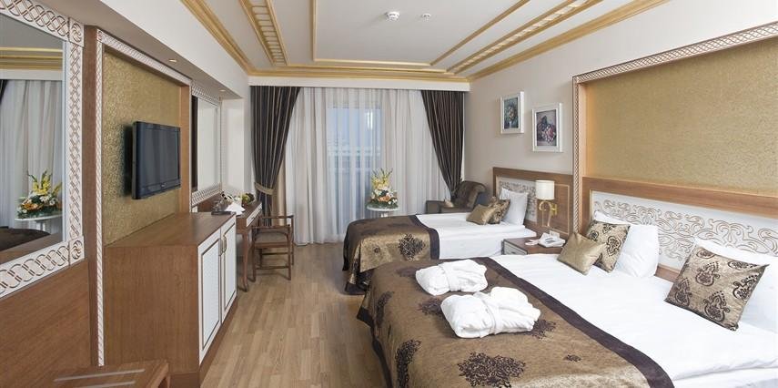 * Standart Oda: 23– 28- 32 m² genişliğindedir. Oda zeminleri laminant, kartlı kilit sistemi, merkezi klima, kasa, uydu yayınlı Plazma TV/LCD TV ve müzik yayını, mini bar, direkt telefon, duman dedektörü, banyolarda duş, telefon ve saç kurutma makinesi bulunmaktadır. Odada çay ve kahve yapmak için gerekli ekipman mevcuttur. Maksimum 3 kişi konaklayabilmektedir. Deniz, Yandan Deniz Manzaralı, Kara Manzaralı oda vardır.