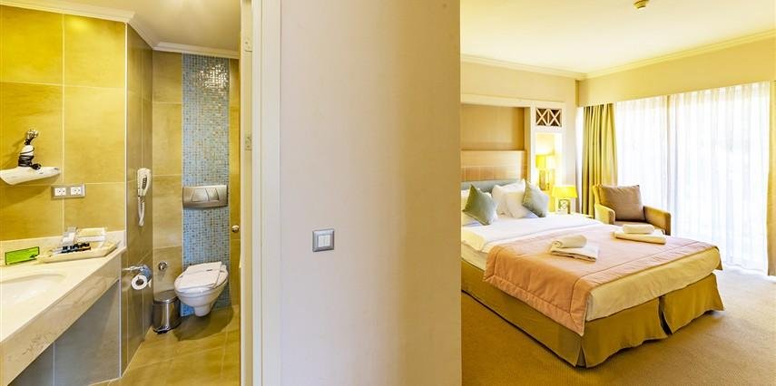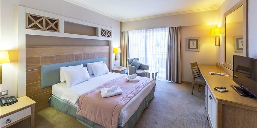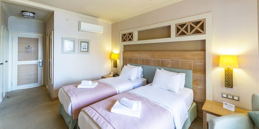 * Standart Oda: 26 - 24 m² genişliğindedir. 77 adet standart oda bulunmaktadır. Bütün odalar deniz manzaralı olup, her odada balkon bulunmaktadır. Odalarda Lcd T, duş, saç kurutma makinesi, telefon, mini bar (ücretsiz), split klima, kasa (ücretsiz depozitolu) bulunmaktadır. Odaların zemini halı kaplıdır.