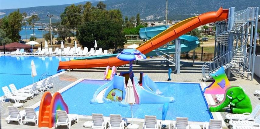- Otel alanında iki kaydıraklı bir büyük açık havuz ve ahtapot kaydıraklı çocuk havuzu bulunmaktadır.