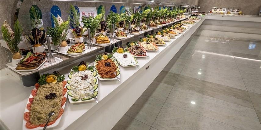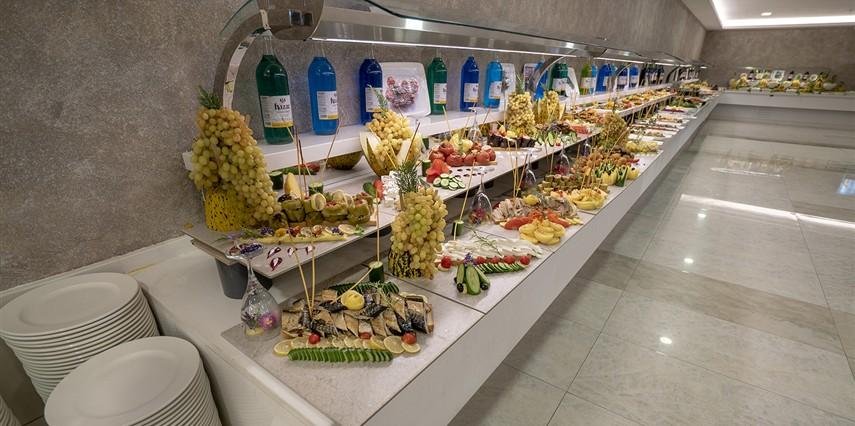 Kişi sayısına bağlı olarak Kahvaltı serpme kahvaltı yada açık büfe , Öğle Yemeği ve Akşam Yemeği açık büfe yada tesisin belirleyeceği 3 seçenekli set menü olarak servis edilir.
