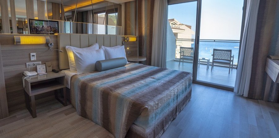 * Jakuzili ve Deniz Manzaralı Premium Oda; 35 m² genişliğindedir. 1 çift kişilik yatak mevcut olup en fazla 2 yetişkin ya da 1 yetişkin 1 çocuk konaklama yapılabilmektedir.