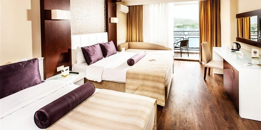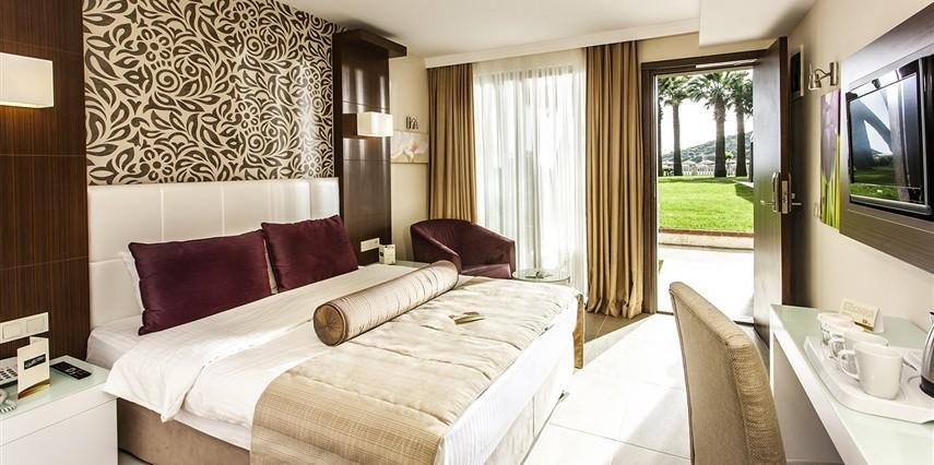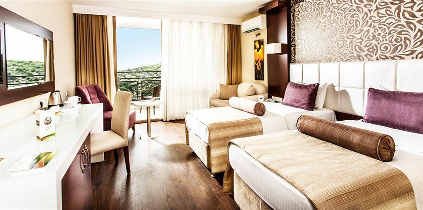* Deluxe Odalar 28 m² genişliğindedir. Tüm odalar balkonludur. Odalarda Split klima, minibar, emanet kasa (ücretli), telefon, saç kurutma makinesi, Lcd Tv, çay- kahve seti bulunmaktadır.